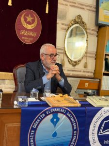 Üniversite Öğretim Elemanları Dayanışma Derneği tarafından düzenlenen program, akademik ve entelektüel tartışmalara katkı sunmayı amaçlayan bir etkinlik olarak gerçekleştirildi. Programın açılış konuşmasını yapan Dernek Başkanı Prof. Dr. Muhammet Kurulay, derneğin geçmiş faaliyetlerine (Pof. Dr. Sefa Saygılı ve Prof. Dr. Zekai Şen programları gibi) değinerek, günümüzde üniversitelerin yapay zekâ ve dijitalleşme süreçleriyle birlikte geçirdiği dönüşüme dikkat çekti. Açılışın ardından, İstanbul Üniversitesi Edebiyat Fakültesi Tarih Bölümü mezunu ve uzun yıllar Başbakanlık Osmanlı Arşivi bünyesinde görev yapmış olan Prof. Dr. Mehmet Ali Beyhan konuşmacı olarak takdim edildi.